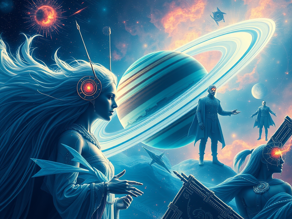 Saturn’s shadow falls, a testing hand. We face our fears, on shifting sand. Limitations rise, a heavy weight. We seek release, to seal our fate. Trials emerge, a haunting call. We build our strength, to stand up tall. Illusions fade, a whispered sigh. We break the chains, beneath the sky. We hold on tight, to inner light. And find our path, in darkest night. Can we embrace, this testing grace? And find our peace, in time and space? Or are we bound, to wander on? A melancholy soul, but never gone.