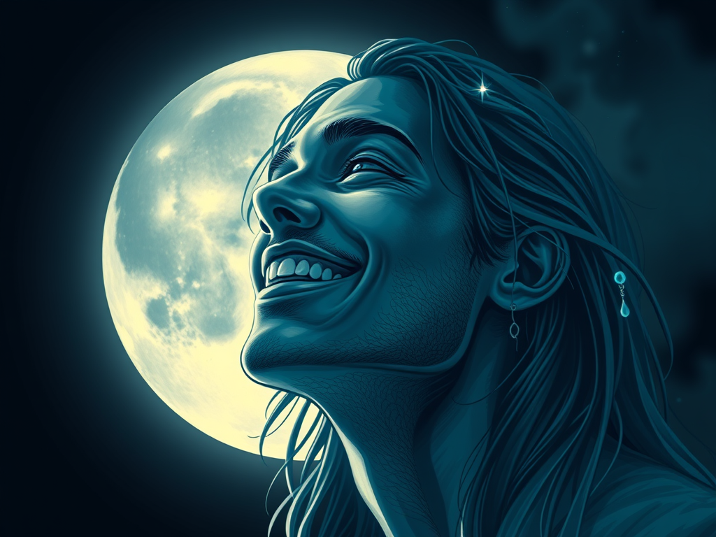 A soft glow stirs inside. A smile, unbidden, blooms. Moon’s gentle hand? They speak of woven peace. Yet, joy feels fragile now. Is it a fleeting dream? A whisper in rough seas? Do tides soothe our hearts? Or, just a false, calm scene? We seek calm in moonlight. A pause amidst the storm. Does balm heal our wounds? Or, hide the scars we mourn? Emotions sway, they say. Moon’s rhythm takes control. But, is it a lullaby? An escape from harsh roles? Harmony, a gift or lie? A break from heavy loads? Contentment, a fragile bloom. In barren, lonely roads. Does it bring true belonging? Or, just a fleeting code? Moon shifts, moods all change. A cycle, rise and fall. Do we find peace in light? Or, shadows, stand up tall? Is happiness a gift? Or, haunts us, makes us small?
