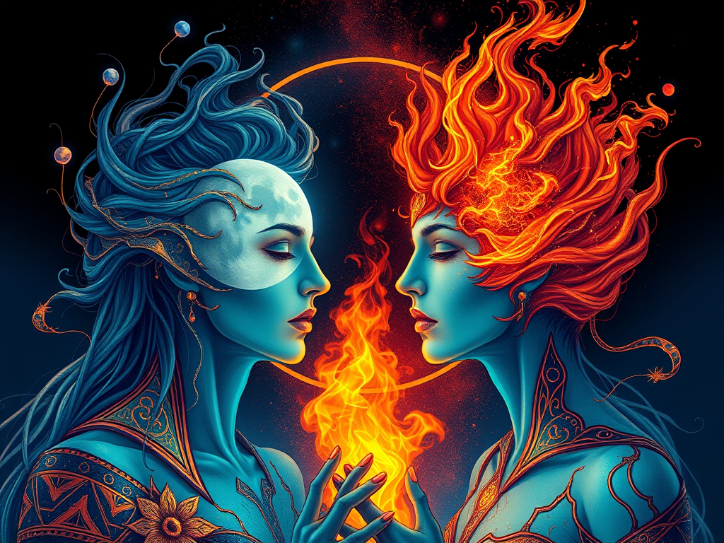 The Moon meets Mars in restless fire. The Moon feels, remembers, and longs for comfort. Mars burns, pushes, and demands release. When they join, the heart does not stay quiet. Emotions turn sharp, fast, and alive. What should flow gently instead boils. The Moon wants safety, but Mars strikes forward. The result is passion mixed with unease. It feels like warmth that suddenly scalds.